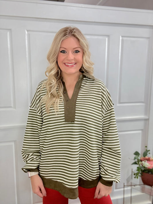 Olive Striped Collared Top
