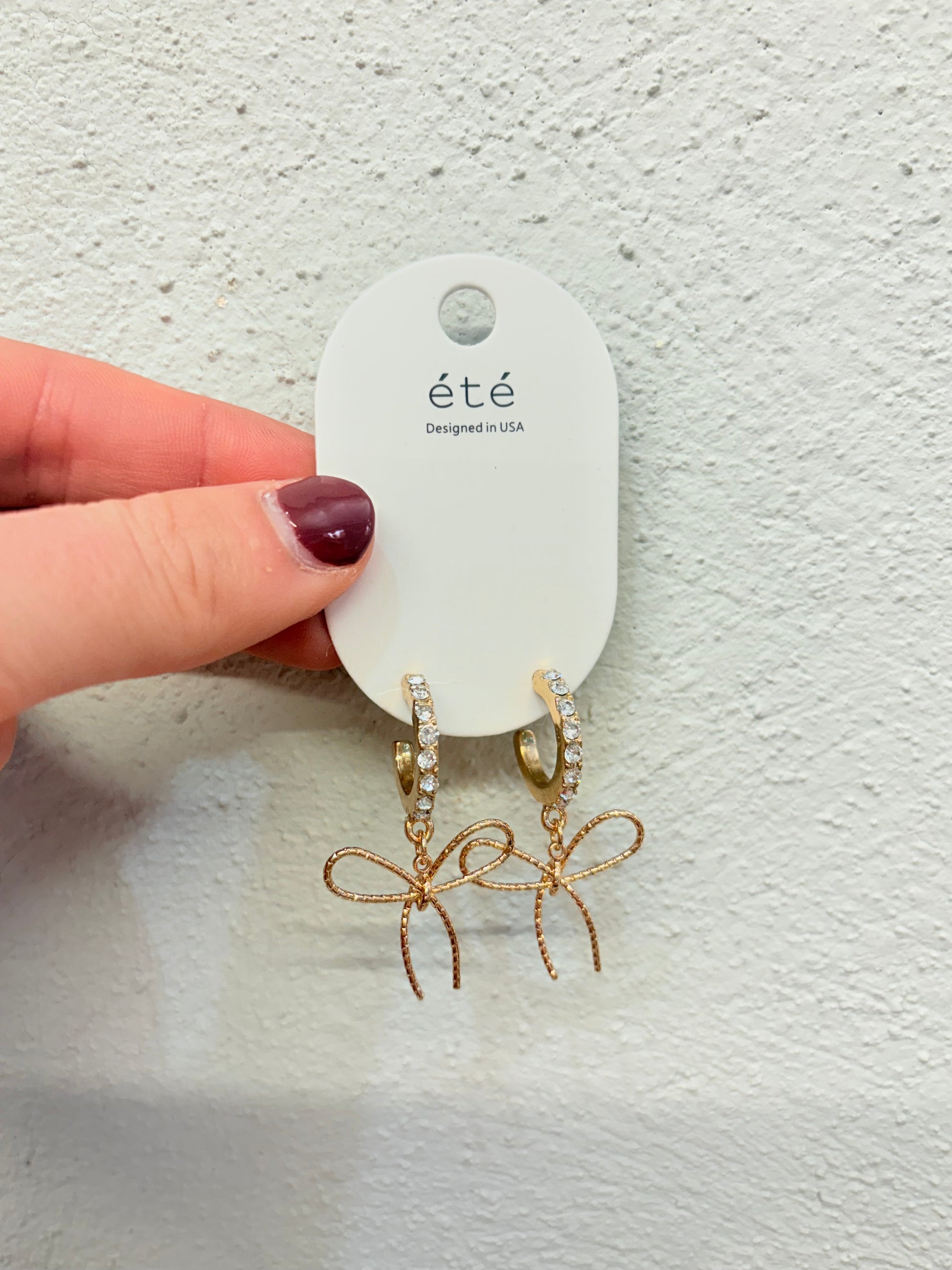 Clear Rhinestone Huggie Hoop with Gold Bow