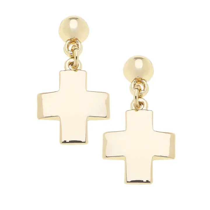 Elevate your look with these Macy Square Cross Earrings, crafted in shiny gold for a sleek, modern vibe. The square cross design adds a geometric flair, perfect for those who appreciate minimalist yet stylish accessories. Whether worn day or night, these earrings are a timeless statement piece. DETAILS Base Metal with Shiny Gold Plating 1"L x .5"W