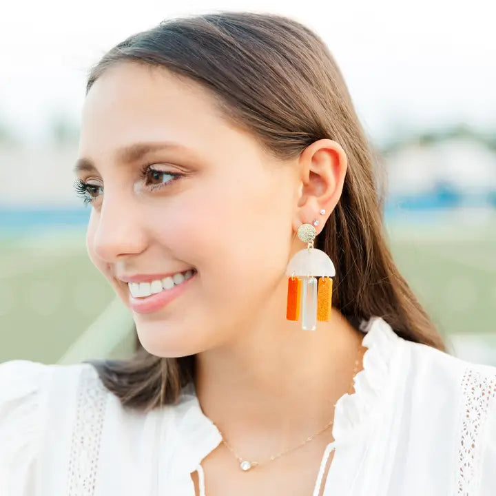 Taylor Shaye Designs brings you the Orange/Iridescent Huddle Drops, an exquisite addition to our Dangle Earrings collection. These earrings are a true representation of our commitment to creating unique and stylish jewelry that complements every outfit.