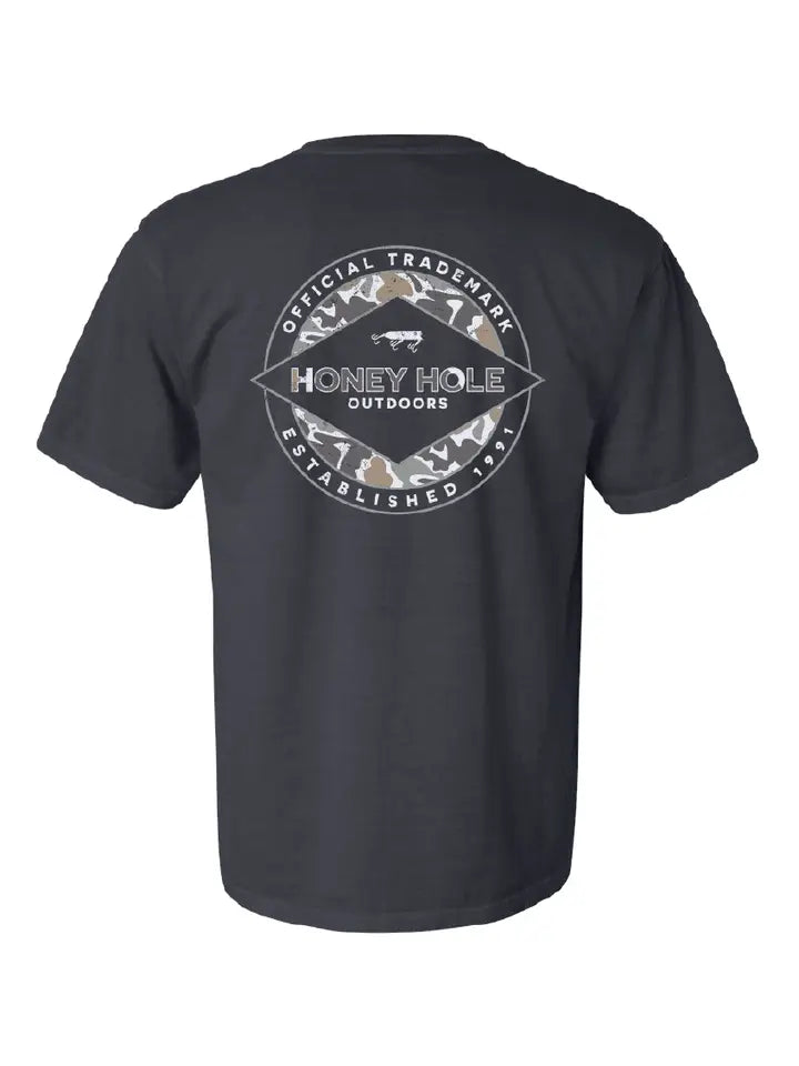 Show off your rugged style with this Honey Hole graphic tee. Crafted from 100% soft cotton, this shirt offers unbeatable comfort and a perfect fit. The unique camo design adds a touch of outdoor flair, making it an ideal choice for anyone who loves the great outdoors and casual style. Wear it on any adventure or for everyday comfort.. 100% Cotton Color: Graphite