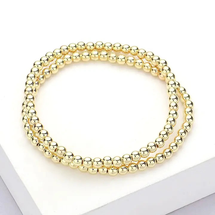 Waterproof Stainless-Steel 4mm Beaded Set of 2 Bracelets